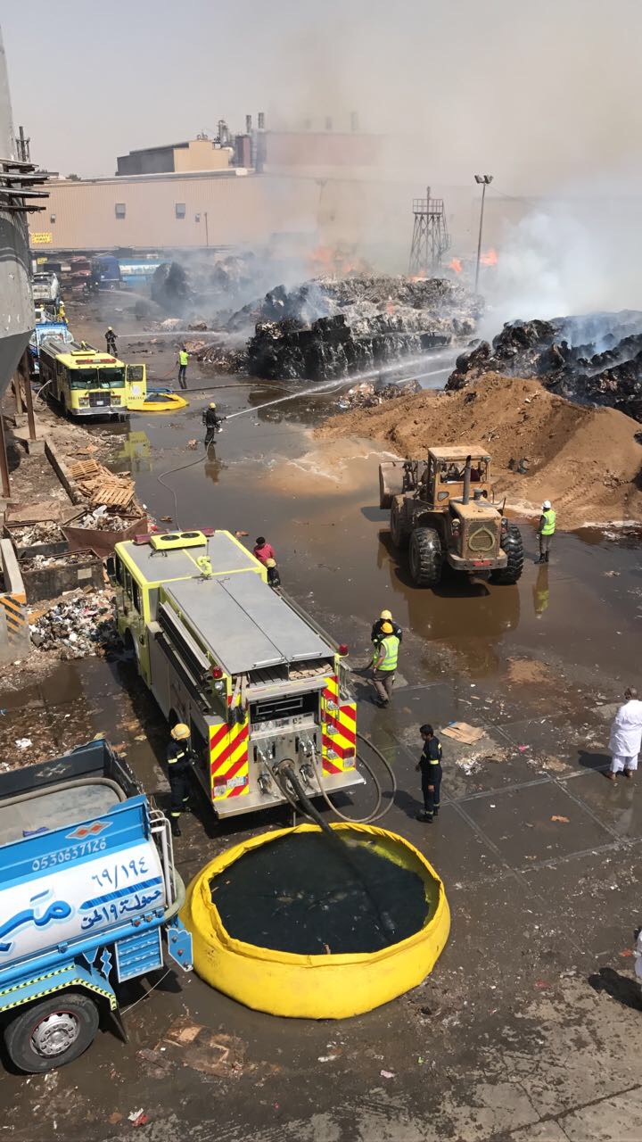 وفي حادث منفصل تباشر فرق الدفاع المدني حريق جنوب محافظة جدة اندلع في مساحات كبيرة دخل مصنع لتدوير الورق جاء الحريق على بالات ورق وصل ارتفاعها الى ٣م تستخدم لتدويرها وانتاج الورق …. لازالت فرق الدفاع المدني تباشر الحادث