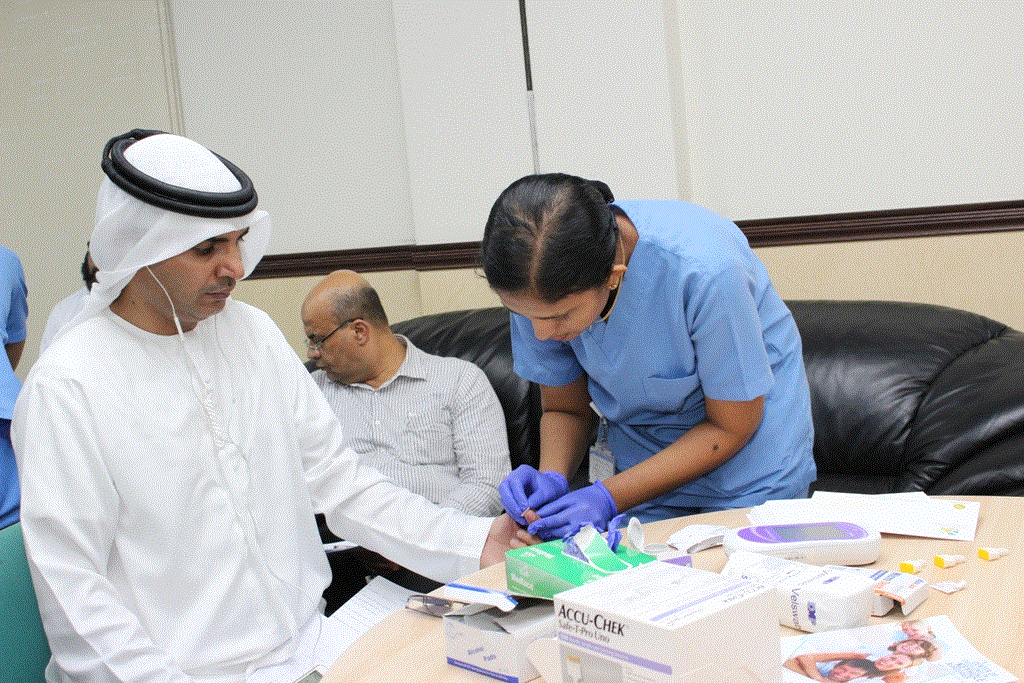 ورافق المحاضرة فحص طبي لقياس الضغط والسكر ومؤشر كتلة الجسم لجميع المشاركين.