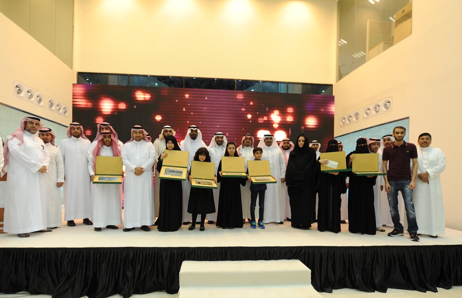 وكرم معالي الرئيس العام للهيئة العامة للأرصاد وحماية البيئة الدكتور خليل بن مصلح الثقفي خلال فعاليات الاحتفال، الطلاب والطالبات الفائزين بجائزة المسابقة الإلكترونية لأجمل صورة بيئية، وأفضل رسمة بيئية، والتي أطلقتها الهيئة بالتعاون مع وزارة التعليم في إطار التعاون على نشر التوعية البيئية بين كافة أفراد المجتمع ضمن حملة (البيئة في عيون أطفالنا)، وفاز بها (10) طلاب وطالبات من مختلف الأعمار.