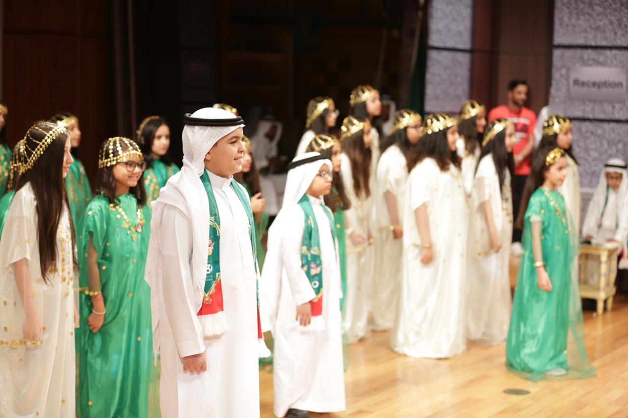 وفي ختام الفعاليات قدمت عروض وفلكلورات شعبية اشتملت على المجرور وعدد من الفلكورات بعدها قدم عرض غنائي مرئي وبأداء جماعي بعنوان / دام عزك ياوطن / من كلمات يوسف الغامدي وألحان: طلال باغر