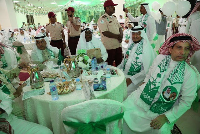 بعد ذلك القى معاليه كلمة رفع خلالها التهاني والتبريكات لخادم الحرمين الشريفين الملك سلمان بن عبدالعزيز آل سعود وسمو ولي عهده الأمين – حفظهما الله – وللشعب السعودي الكريم بمناسبة ذكرى اليوم الوطني مؤكدا أن هذه الذكرى الغالية يعيشها أبناء المملكة في عز وفخر بما تحقق من مجد وخير وأمن وأمان بفضل الله ثم ما قام به مؤسس هذا الوطن الملك عبدالعزيز آل سعود – رحمه الله – لتوحيد هذا الكيان ، واستذكار ما قام به أبناؤه الملوك وصولاً لعهد قائدنا خادم الحرمين الشريفين الملك سلمان بن عبدالعزيز آل سعود وسمو ولي عهده الأمين –حفظهما الله- في ظل رؤية المملكة 2030 التي تصنع المستقبل وتحقق تطلعات القيادة .