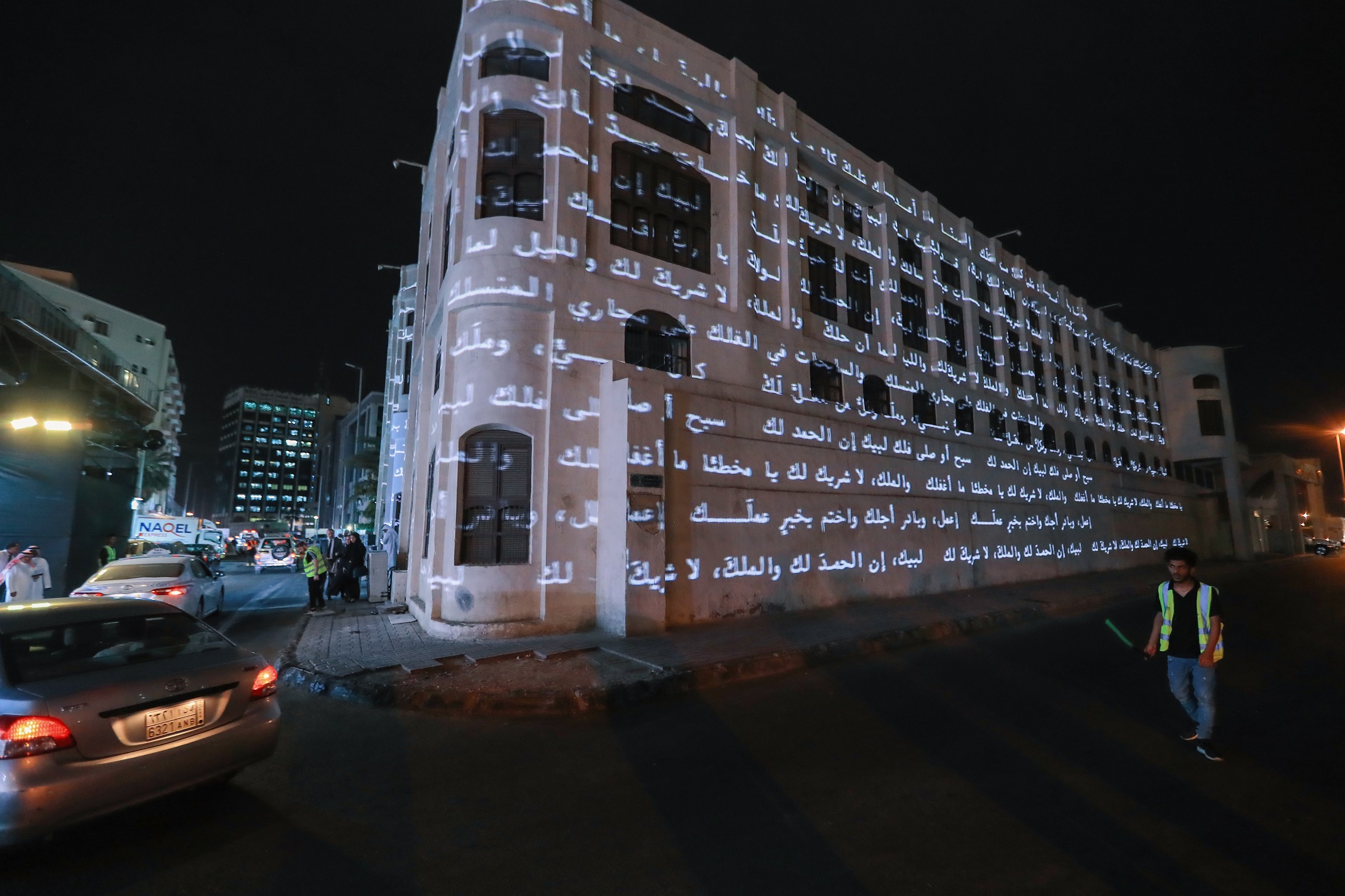 تواصل الجماهيراحتشادها مساء كل ليلة أمام بناية باب البنط بجدة التاريخية للاستمتاع والتأمل في العمل الفني الشاهد على جدران المبنى التاريخي المعنون يـ«البنط» والذي تقدمه الفوتوغرافية مروة المقيط ضمن مبادرة المجلس الفني السعودي 21,39 بدعم من وزارة الثقافة.