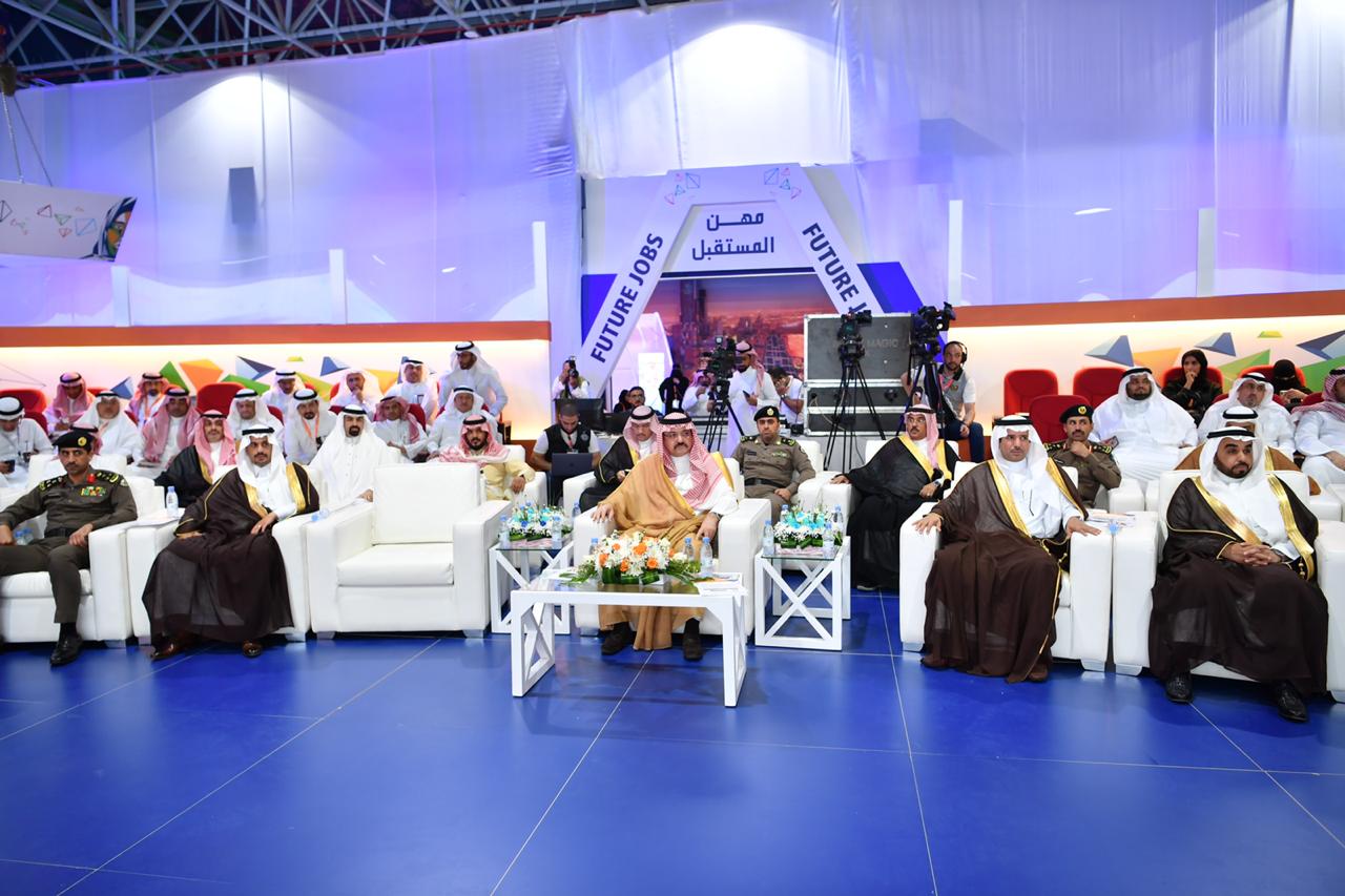 عقب ذلك أخذ سموه مكانه في الحفل حيث تحدّث الدكتور السديري في كلمة أمام سموه والحضور عن أهداف الملتقى وما يقدمه من خدمات وفرص وظيفية للباحثين عن عمل وخلافهم والمسارات والشرائح المستفيدة في ظل رؤية المملكة 2030