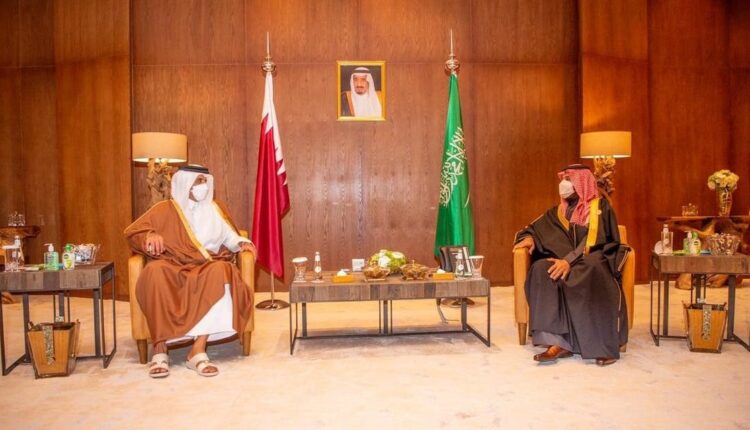 التقى صاحب السمو الملكي الأمير محمد بن سلمان بن عبدالعزيز ولي العهد نائب رئيس مجلس الوزراء وزير الدفاع في قاعة مرايا بالعلا اليوم صاحب السمو الشيخ تميم بن حمد آل ثاني أمير دولة قطر.