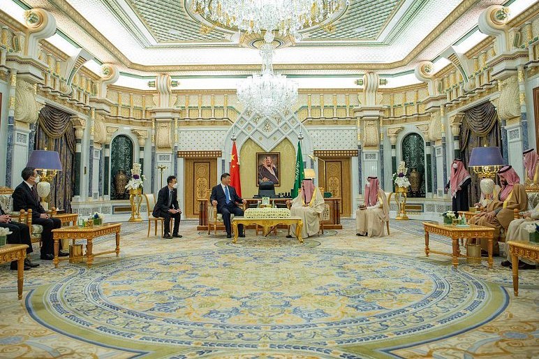 استقبل خادم الحرمين الشريفين الملك سلمان بن عبدالعزيز آل سعود، ملك المملكة العربية السعودية، وصاحب السمو الملكي الأمير محمد بن سلمان بن عبدالعزيز آل سعود ولي العهد رئيس مجلس الوزراء، فخامة الرئيس الصيني شي جين بينغ، وعقدت جلسة مباحثات رسمية بين الجانبين، جرى خلالها تبادل وجهات النظر حول سبل توطيد وتطوير علاقات الشراكة الاستراتيجية الشاملة بين المملكة والصين، ومجمل القضايا الدولية والإقليمية ذات الاهتمام المشترك.